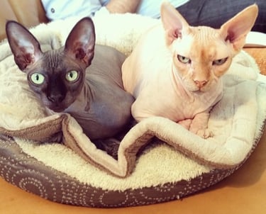 Le Sphynx est aussi très sociable : il aime la compagnie d’autres chats ou chiens et déteste la solitude. Son besoin de chaleur et de contact en fait un compagnon fusionnel et tendre.