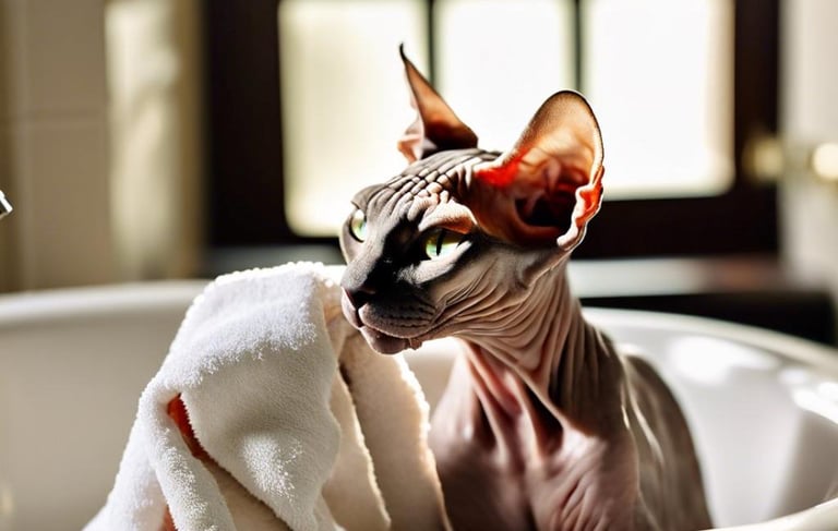 Sans poils, le Sphynx nécessite un entretien particulier : un nettoyage régulier de la peau (une fois par semaine environ) pour éviter l’excès de sébum, ainsi qu’une bonne hygiène des oreilles et des yeux. Il apprécie les environnements tempérés et douillets, et adore se lover dans les plaids ou les genoux de ses humains.